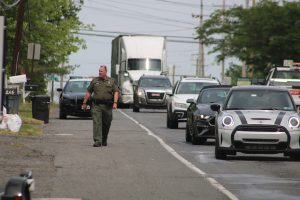 A black bear, who is estimated to weigh about 150 pounds, wandered around the neighborhood off Lincoln Highway and in the woods between Route 1 and West Trenton Avenue.