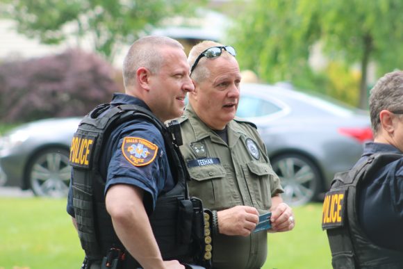 As of 7 p.m., Falls Township police Chief Nelson Whitney said the bear remained on the loose. He urged residents not to approach the bear.