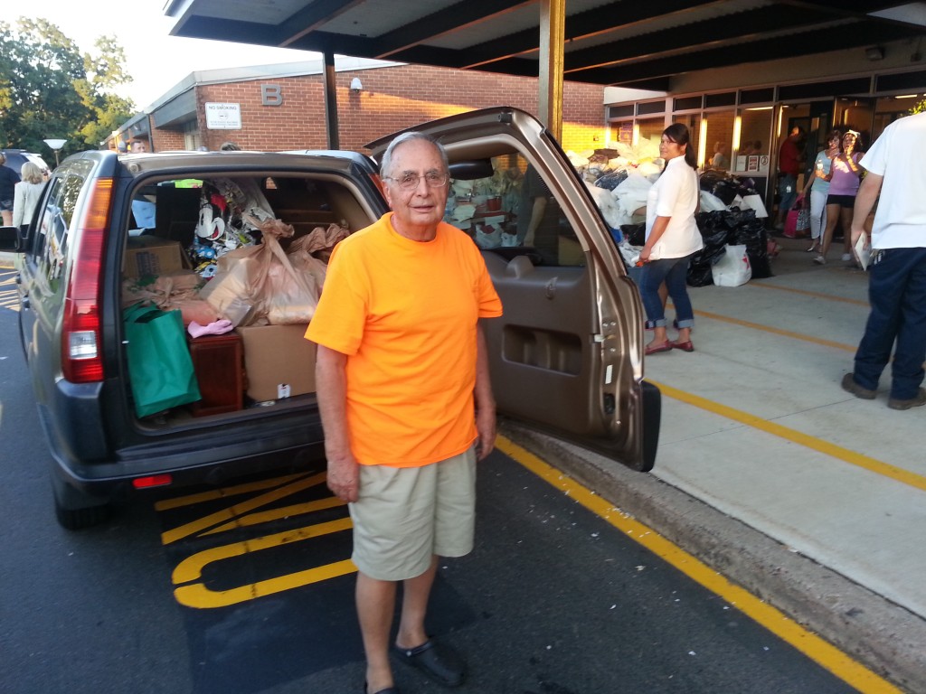Richard Amadio, 84, packs his car with necessities Monday night. Credit: Dave Sommers/LevittownNow.com