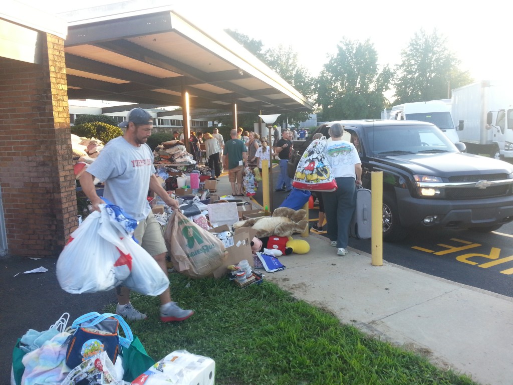 “We’ll be here again tomorrow,” said one weary volunteer. “We have a lot of stuff still available.”