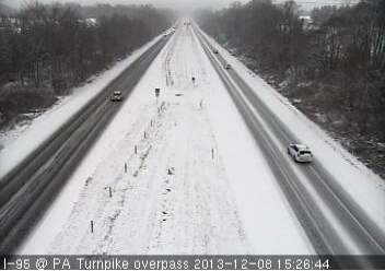 Street Road in Bensalem was at a complete standstill due to snowy conditions and Maple Avenue (Route 213) in Middletown and Langhorne was not much better. Route 1 through Middletown and I-95 in Croydon were partially snow covered as of 3 p.m. Media reports indicated that PennDOT crews were headed out on the roads.