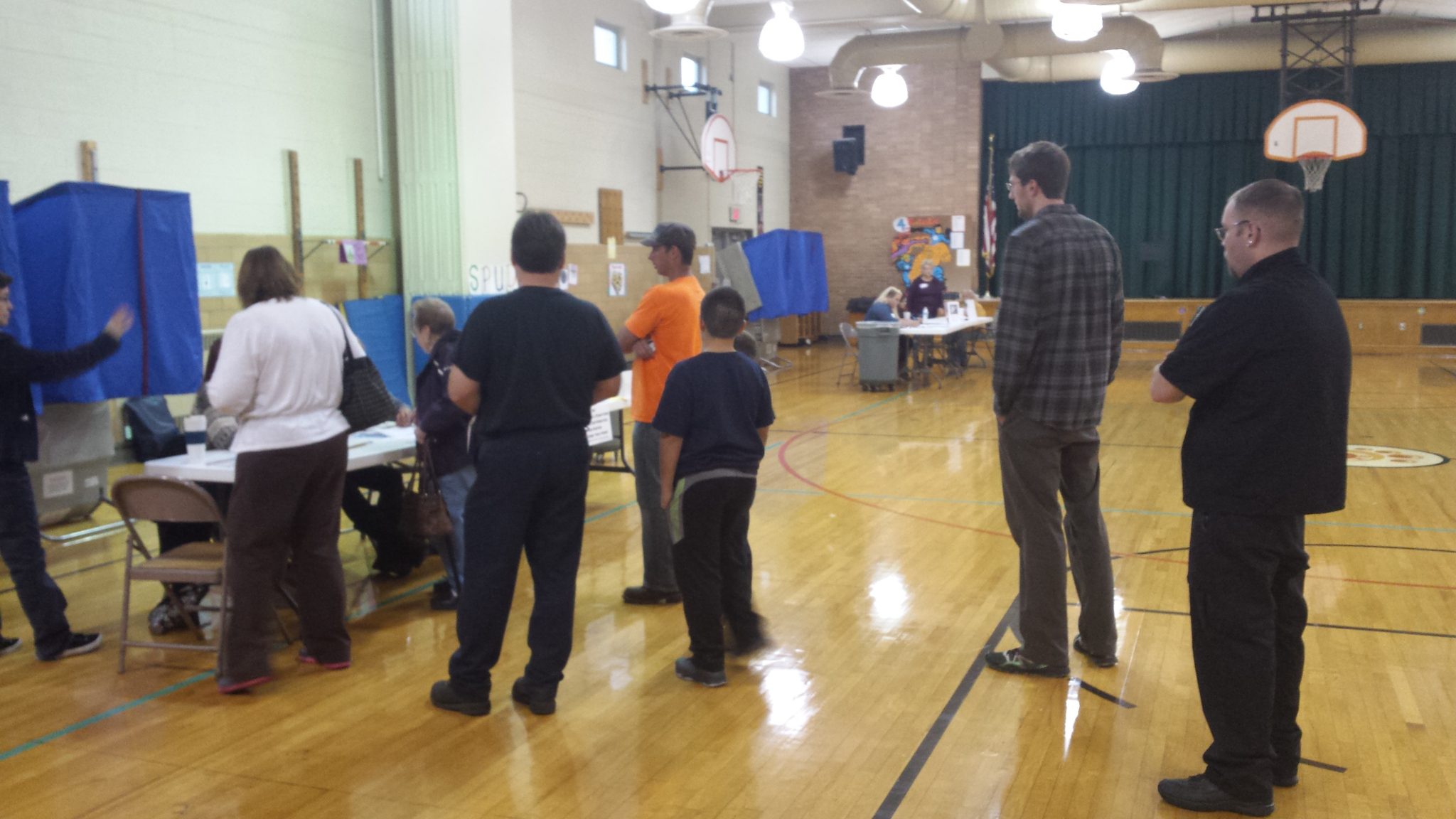 Reports of small lines at polling places throughout the area were heard around dinner time.