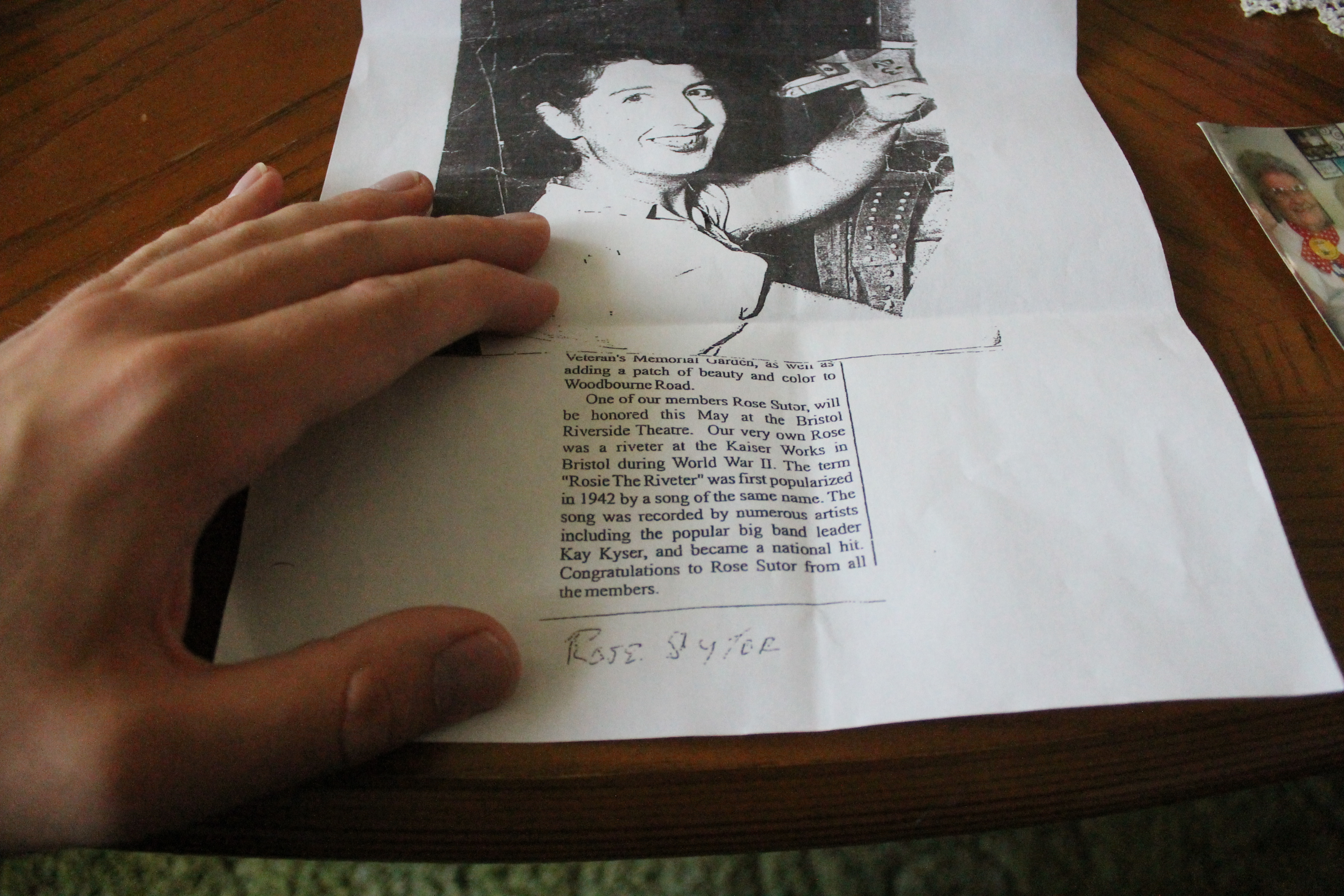 Sutor said she worked from time to time after the war and worked at a book factory in Bristol Borough.