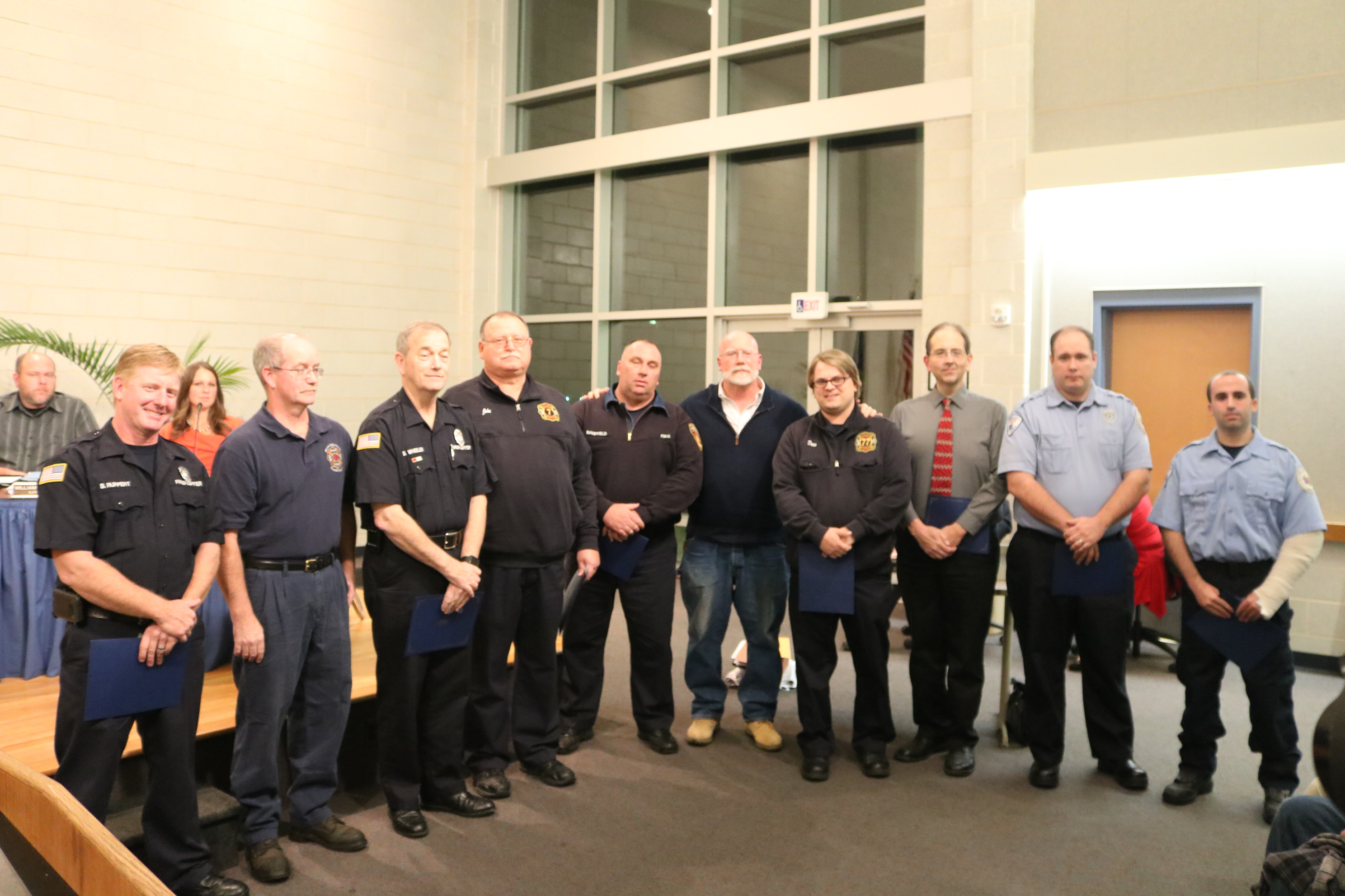 Penndel-Middletown Emergency Squad Chief Andrew Foley recognized nurse practitioner Rebecca MacAdams, physician assistant Eric Stoltz, medical assistant Amy Marquette and x-ray technician Amanda Gallaway from the urgent care center. Penndel-Middletown medics Ryan Packer, Tom Evans, Anderson Rayme and Zac Cooperman were also recognized.
