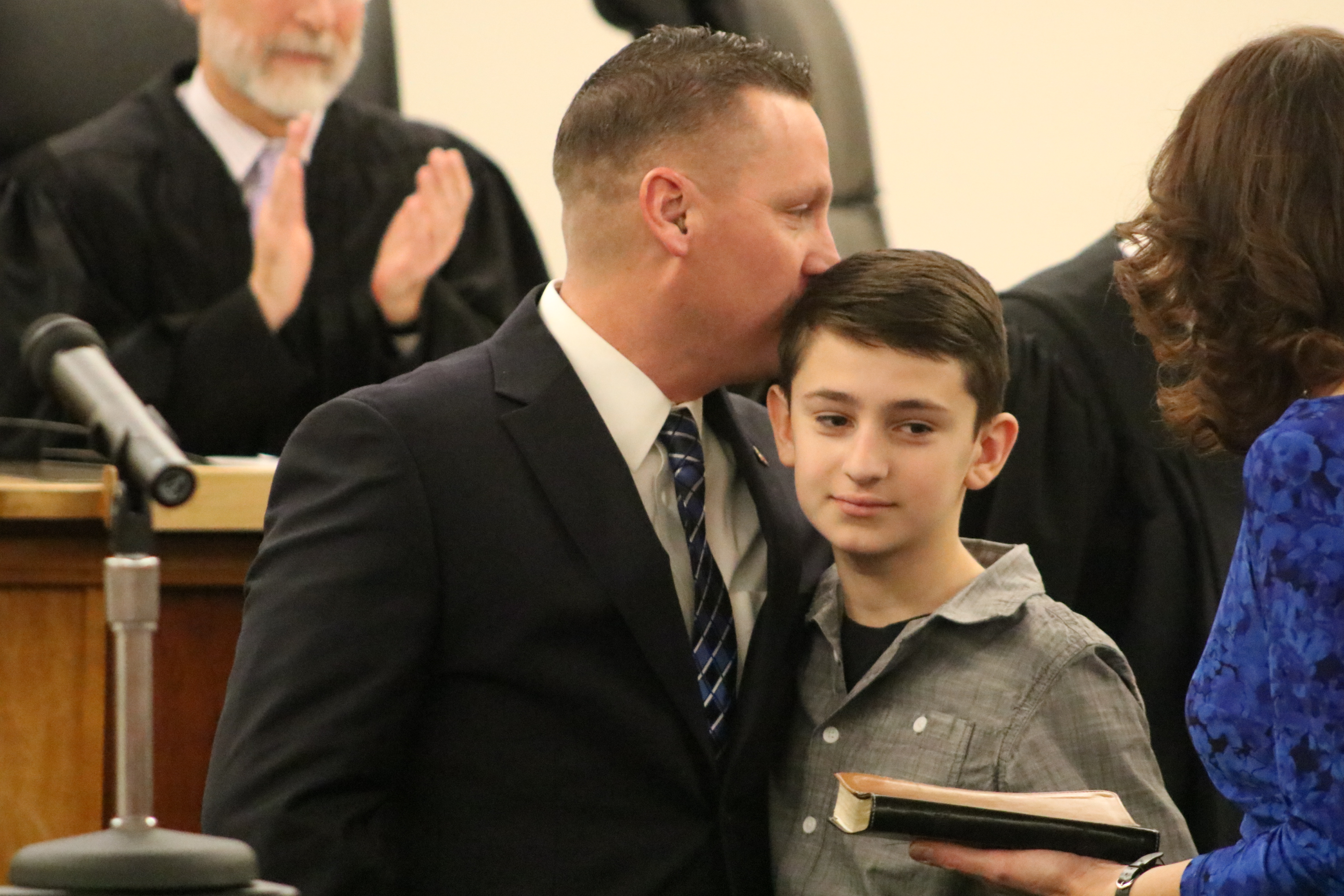 Reiss, a former Lower Makefield supervisor, was first to be sworn in with her family by her side.