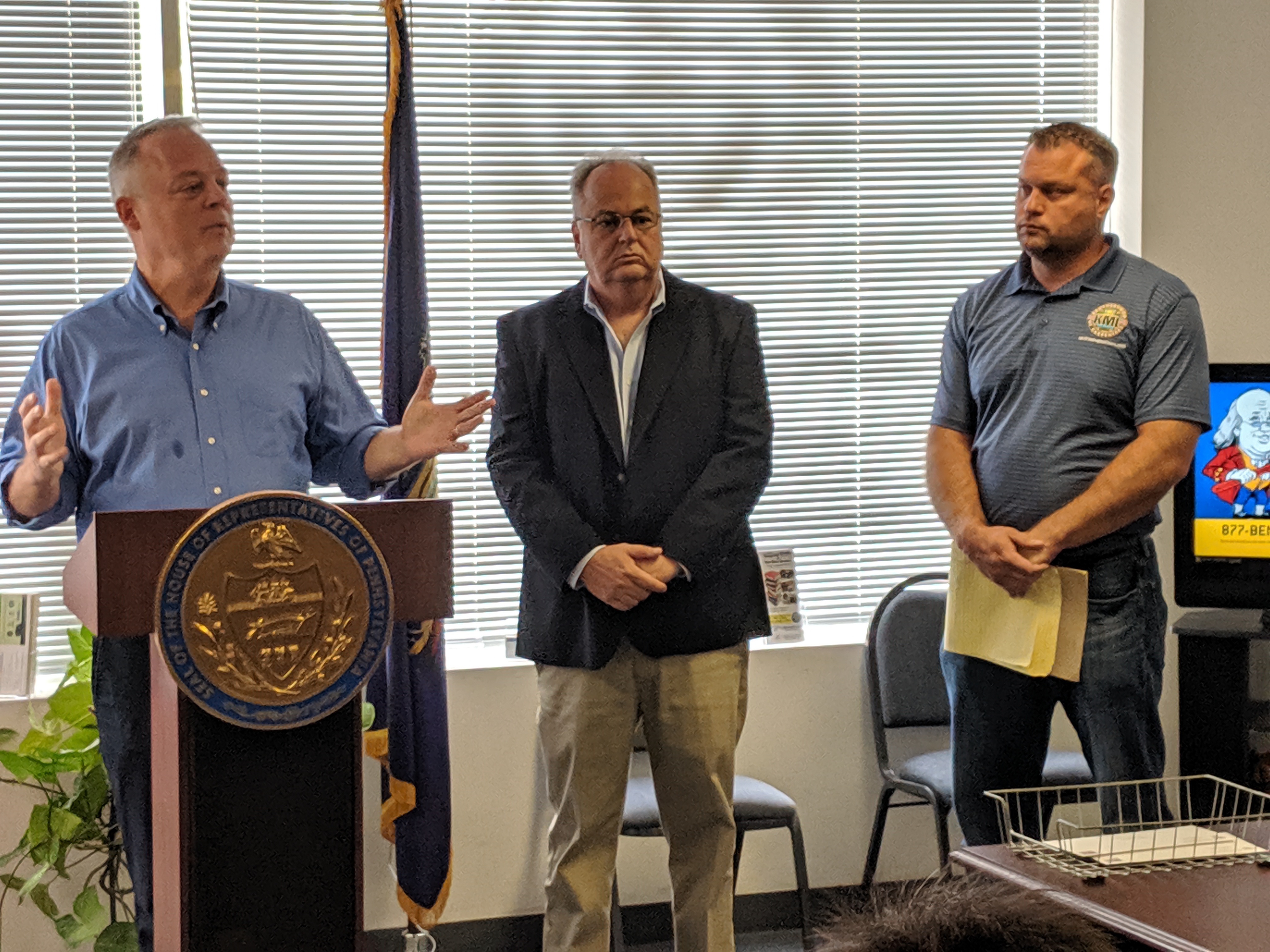 Democratic State Rep. John Galloway and State Rep. Perry Warren held a press conference in Levittown to push changes to cut down on the misclassification of workers as independent contractors. The effort is aimed at protecting workers, making employers take responsibility, and protect jobs.