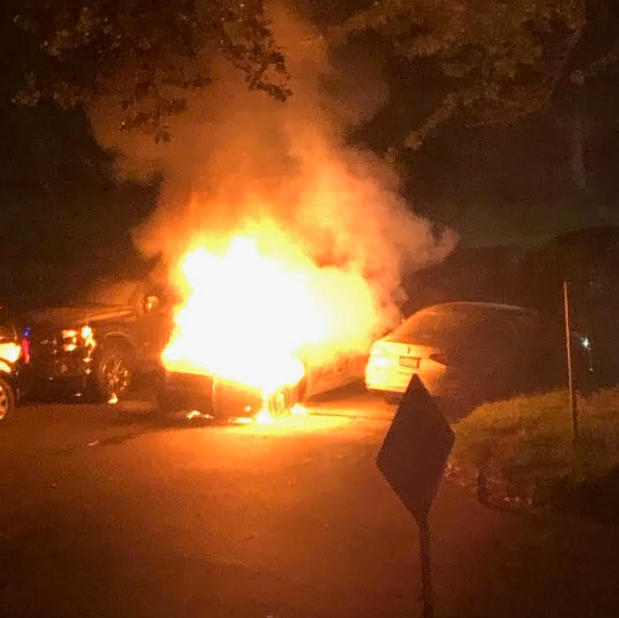 The blaze destroyed the car before firefighters could put it out.