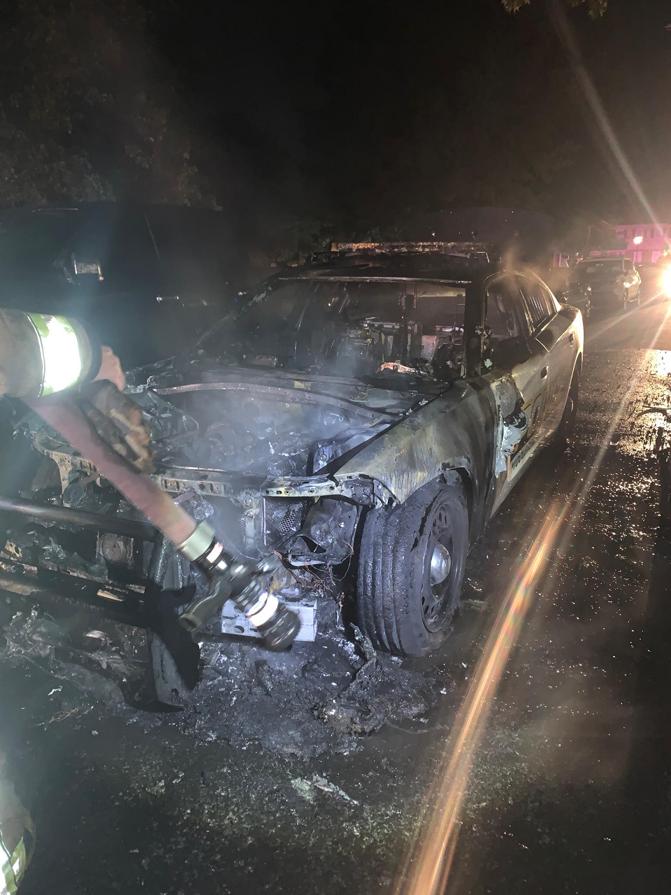 A Middletown police car was burnt to a crisp Saturday night.