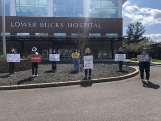 On Wednesday afternoon, a group of nurses at Lower Bucks Hospital in Bristol Township stood outside calling for proper protection for health care workers as part of a National Day of Action.