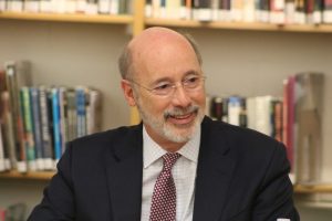 Gov. Tom Wolf speaking at Pennsbury High School in February 2020.