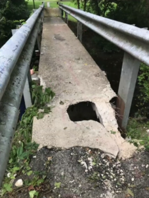 The pedestrian bridge was closed earlier this year due to a “structural failure,” township Building and Zoning Director Pat Ennis said.