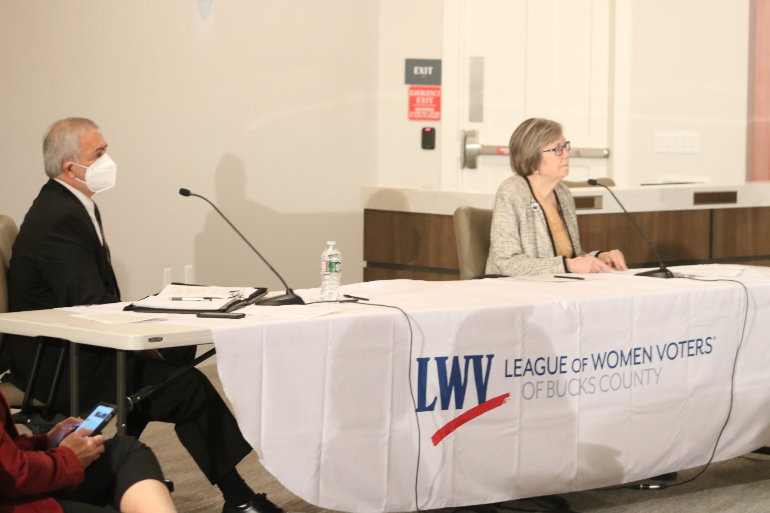 Finello, a Democrat from Ivyland Borough, and Fitzpatrick, a Republican from Middletown Township, gathered at the Doylestown Township Administration Building Monday morning for the forum sponsored by the chambers of commerce from across Bucks County and the League of Women Voters of Bucks County.