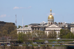 The New Jersey State House and surrounding state office buildings employ many Levittown-area residents who commute across the Delaware River.