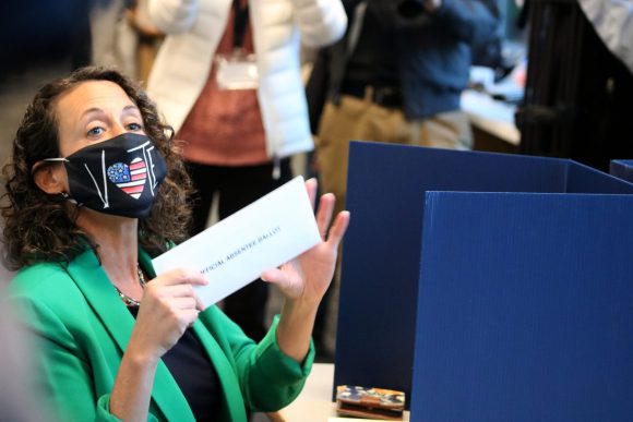 Secretary of State Kathy Boockvar after completing her ballot.