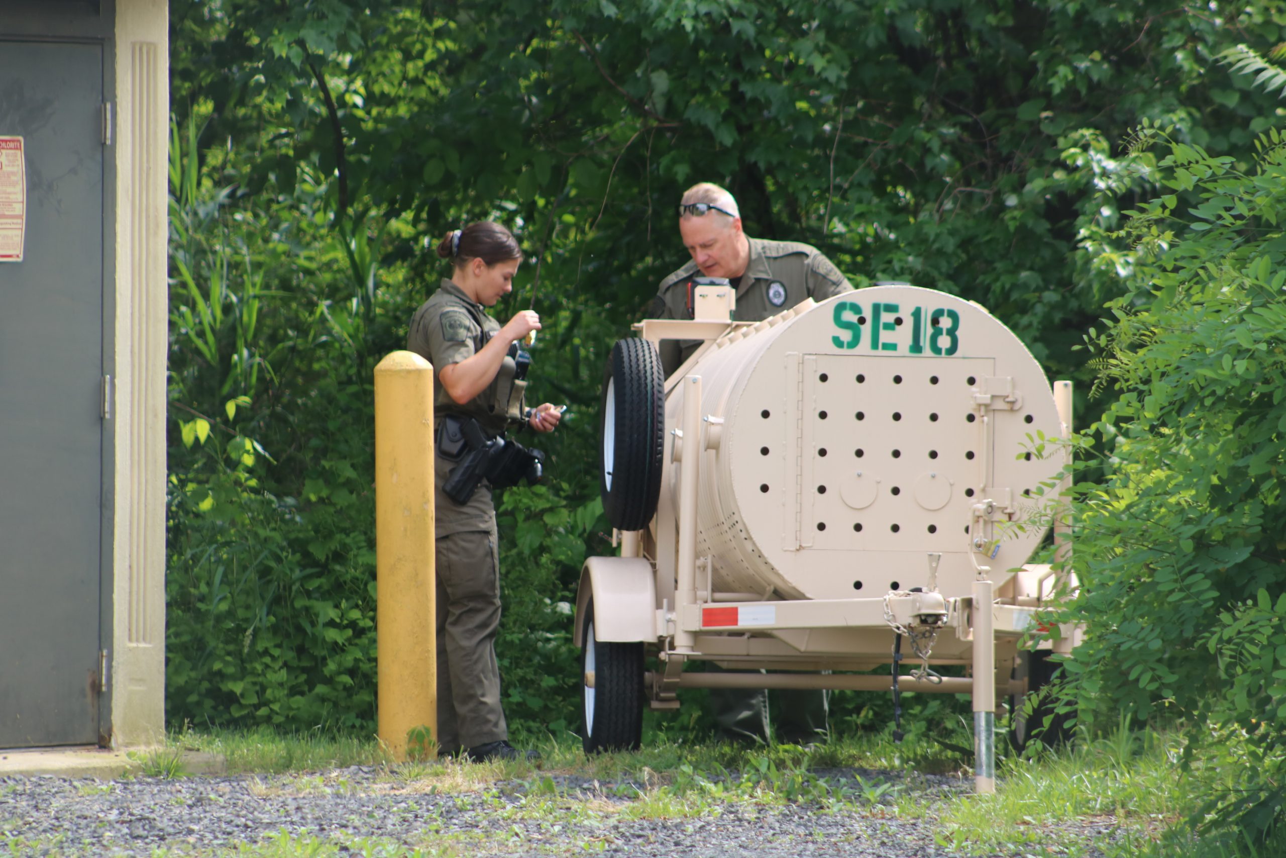 She said wardens had placed a trap in the woods where the bear was hanging out. The goal was for him to hopefully make his way into the trap without having to be tranquilized.