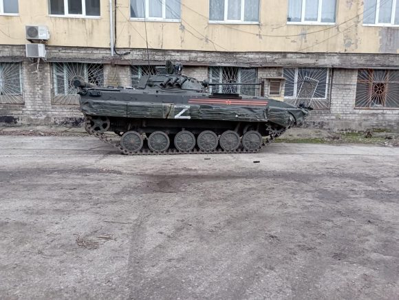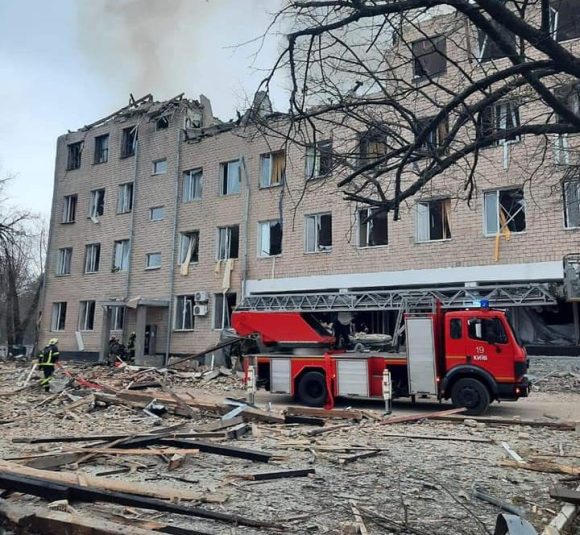 Russian military damage to a Ukrainian military building Thursday in Desnyansky.