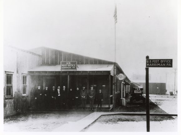 The model town of Merchant Shipbuilding Corporation Harriman took its place definitely on the map of the Keystone State yesterday when the Post Office at Harriman was officially opened for business.