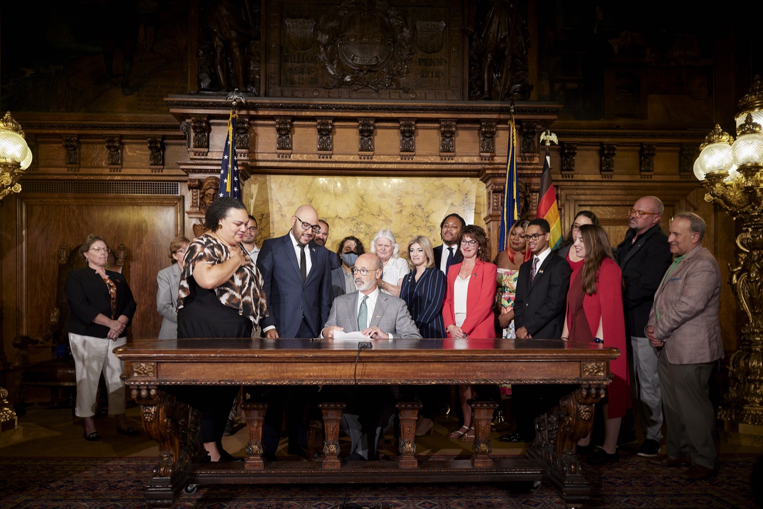 Gov. Tom Wolf signs the conversion therapy executive order on Tuesday.