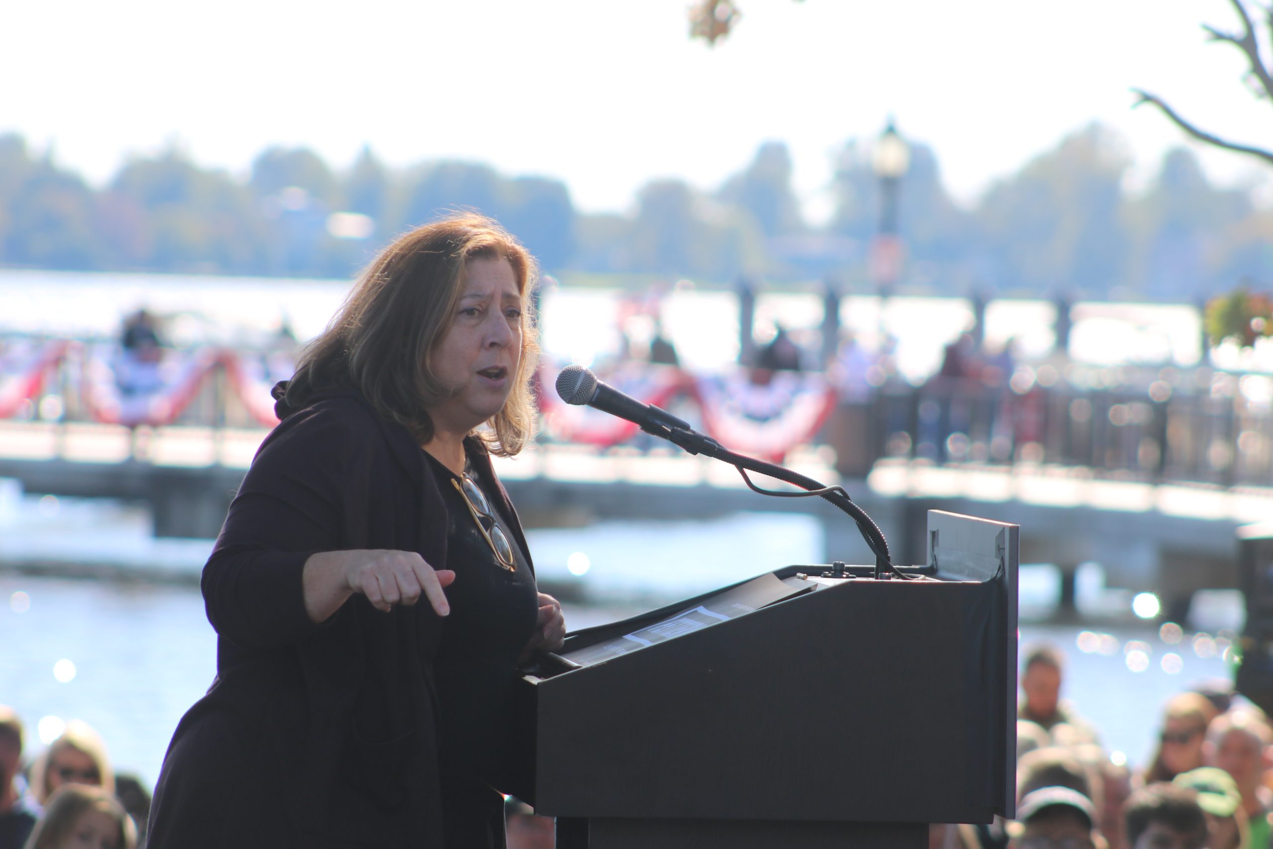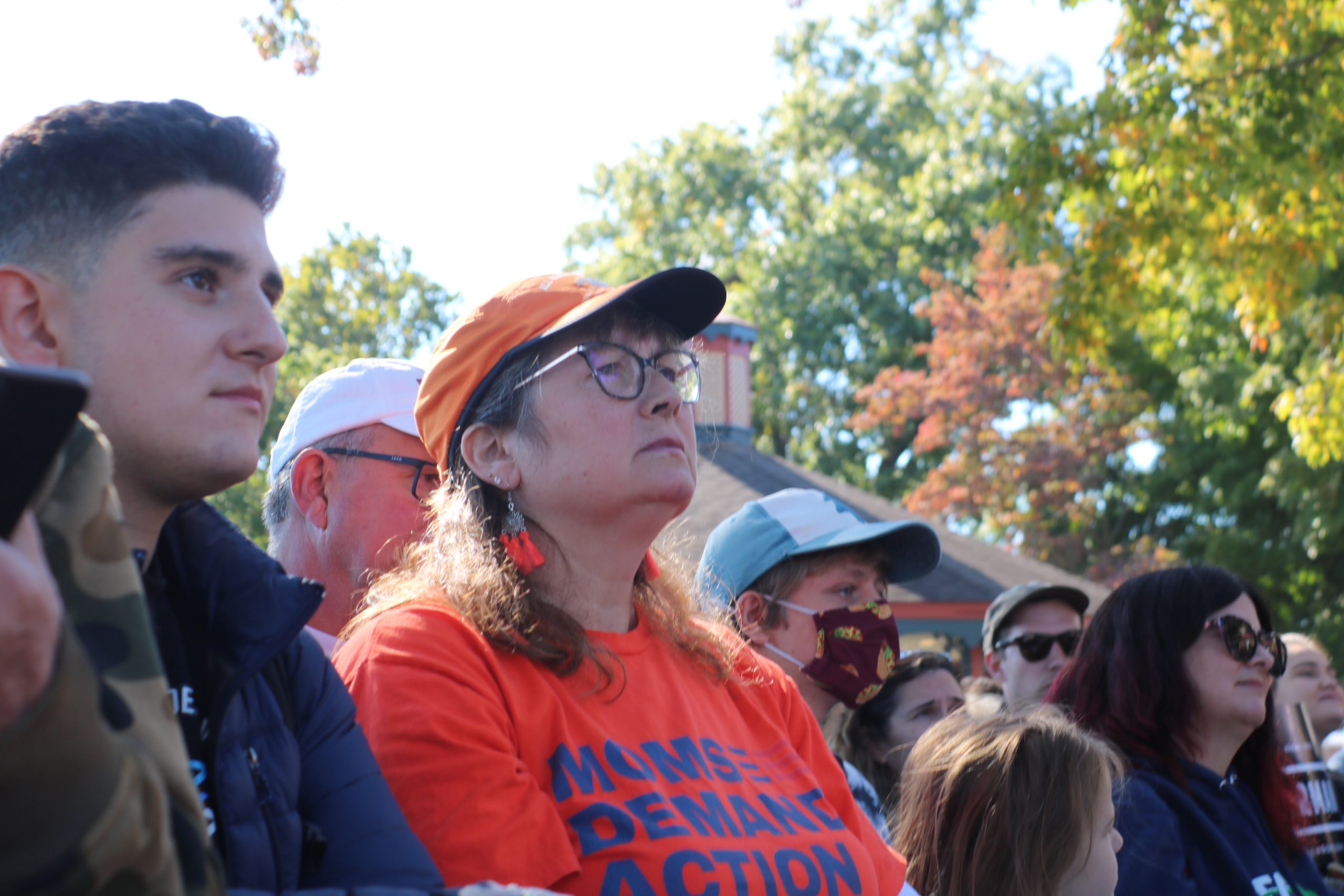 Ashley Ehasz, the Bensalem Township Democrat running against incumbent Republican Congressman Brian Fitzpatrick, spoke to the crowd.