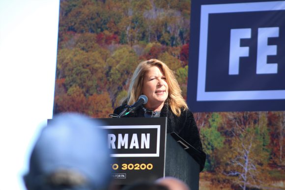 Democratic former Congressman Patrick Murphy, who also served as undersecretary and acting secretary of the U.S. Army from Bristol, and Ann Marie Mitchell, the Democrat running for the Sixth Senate District, both spoke to the crowd and pledged support for Fetterman.
