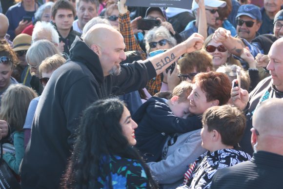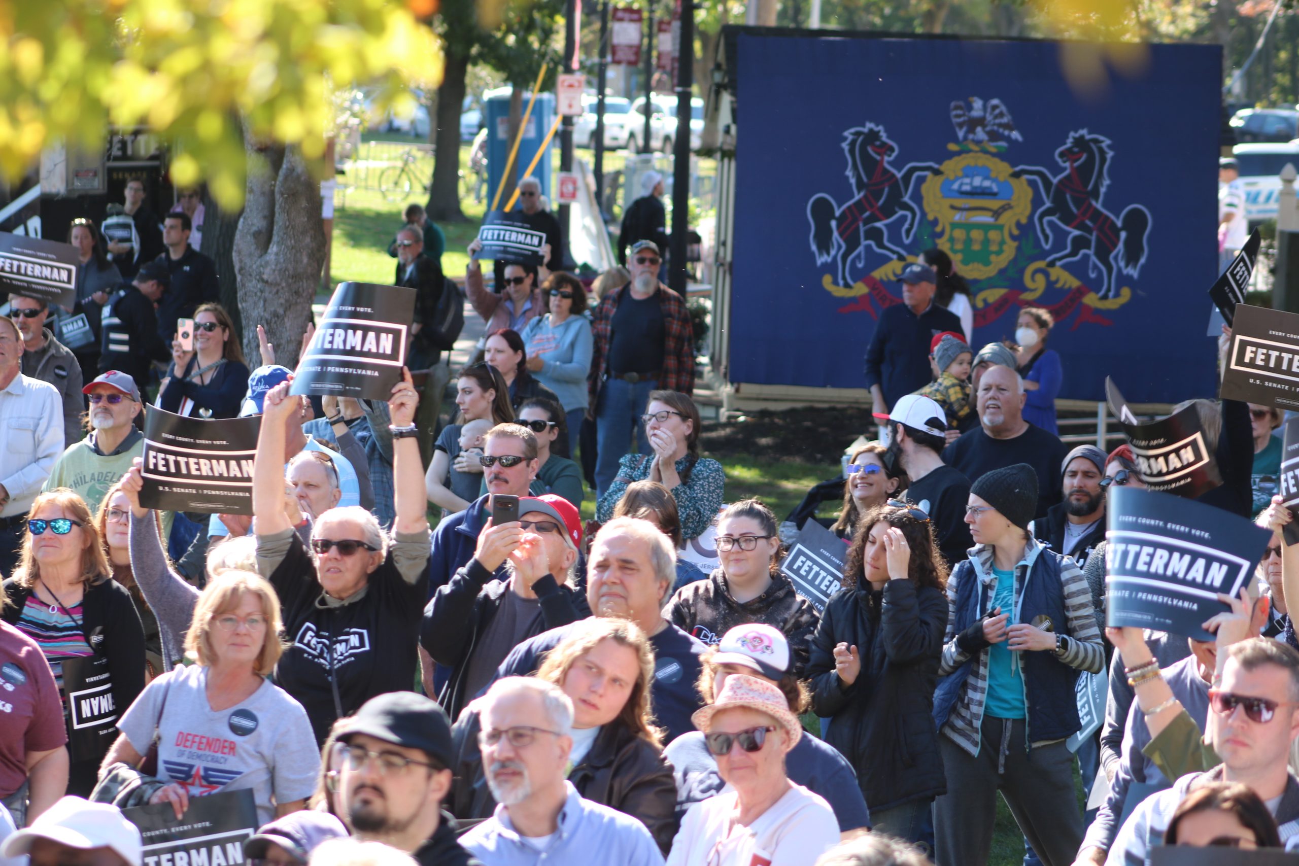 An eager crowd of Democrats gathered to cheer for and listen to Lt. Gov. John Fetterman, the Democrat running for U.S. Senate against Republican Dr. Mehmet Oz.
