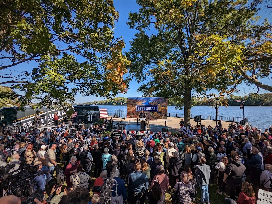 Fetterman’s campaign said 1,230 supporters filled Bristol Lions Park along the Delaware River in Bristol Borough on a crisp Sunday afternoon.