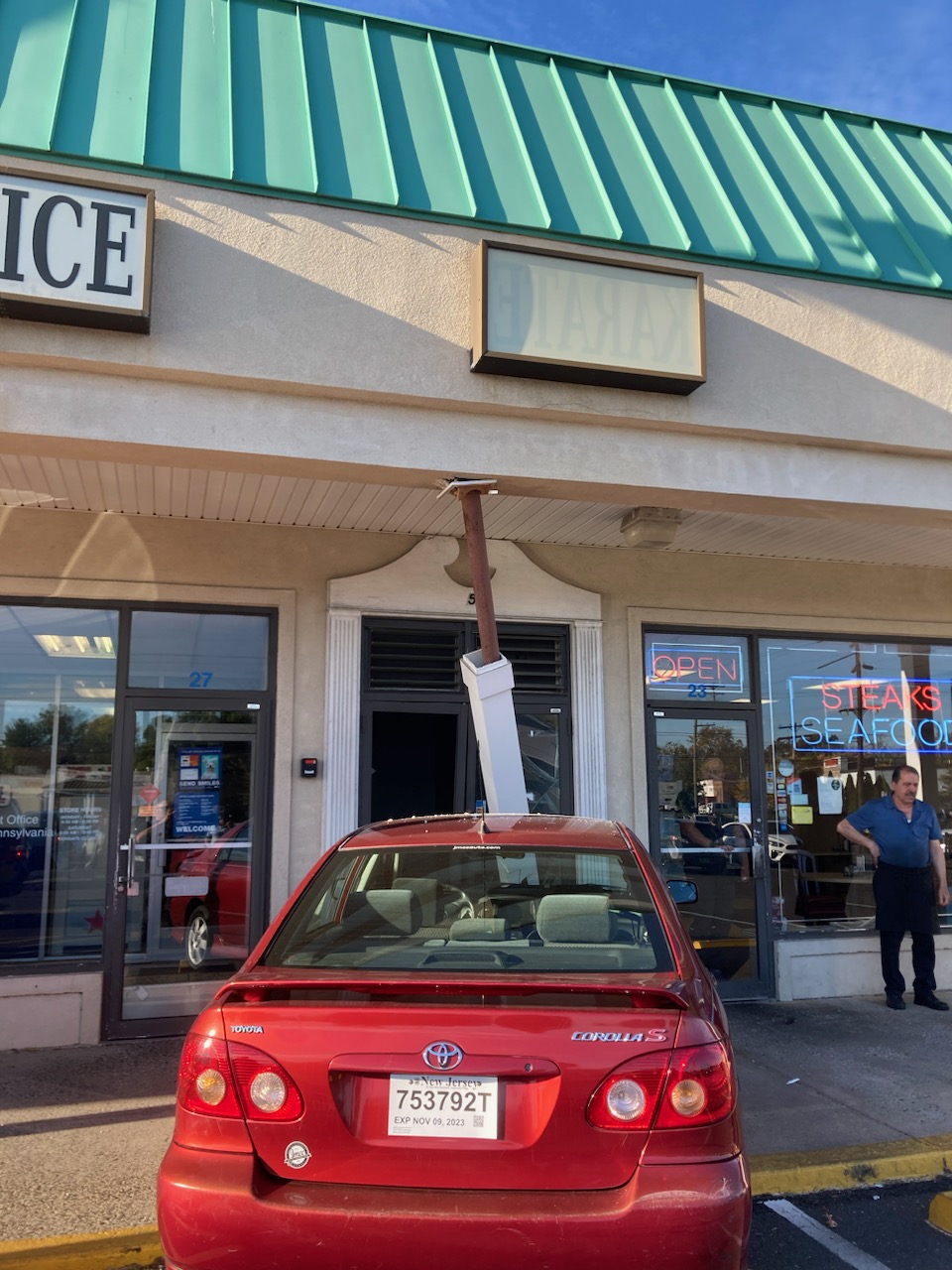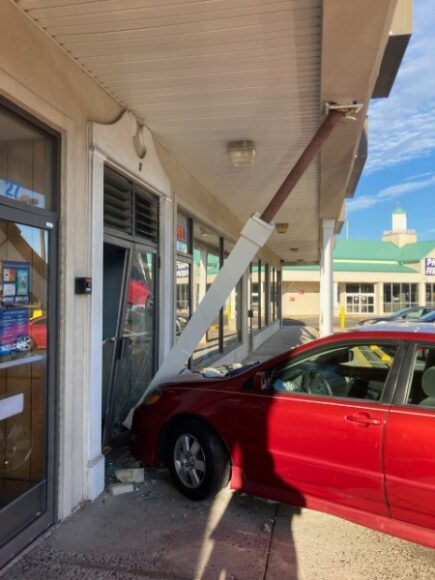 A vehicle hit the Penndel Shopping Center on Wednesday afternoon, causing damage to the structure.