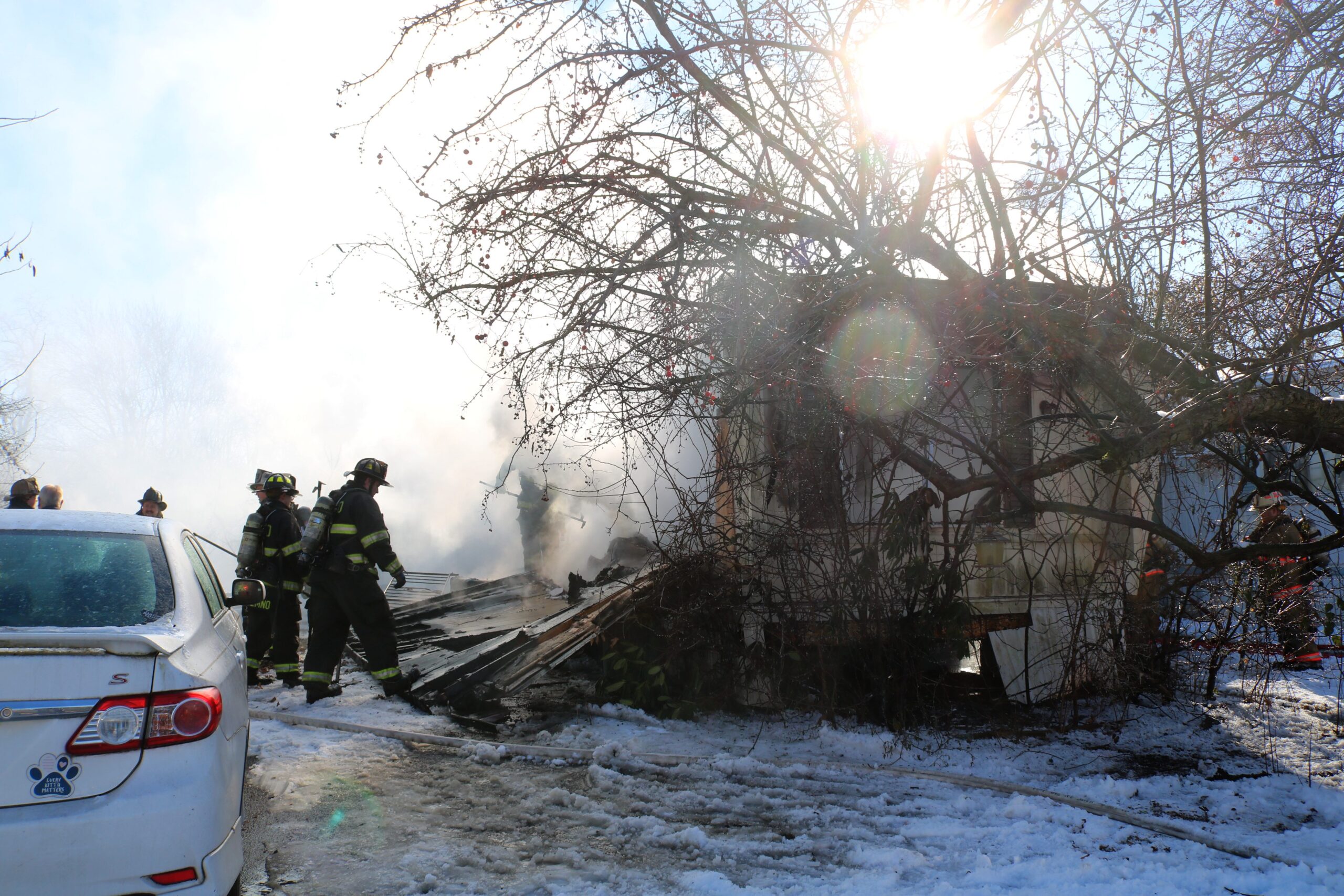 Due to the lack of fire hydrants in the community, firefighters laid a hose line from Old Bristol Pike and established a water source to battle the flames, Hilbert said.