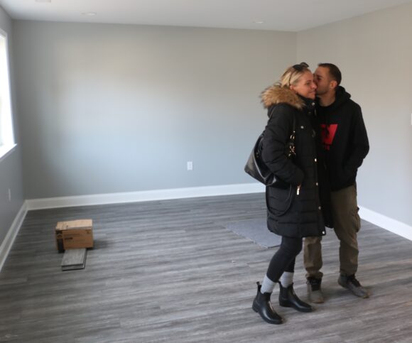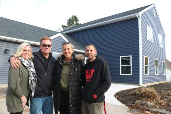 Construction began in early summer, and on Wednesday afternoon, the family was handed the keys to a brand-new, six-bedroom, two-and-a-half-bath home.