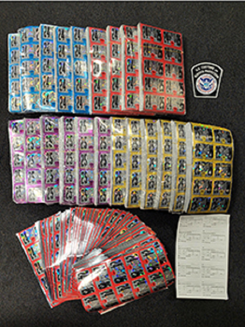 The seizure included approximately 22,000 fake stickers, distributed across two separate shipments.