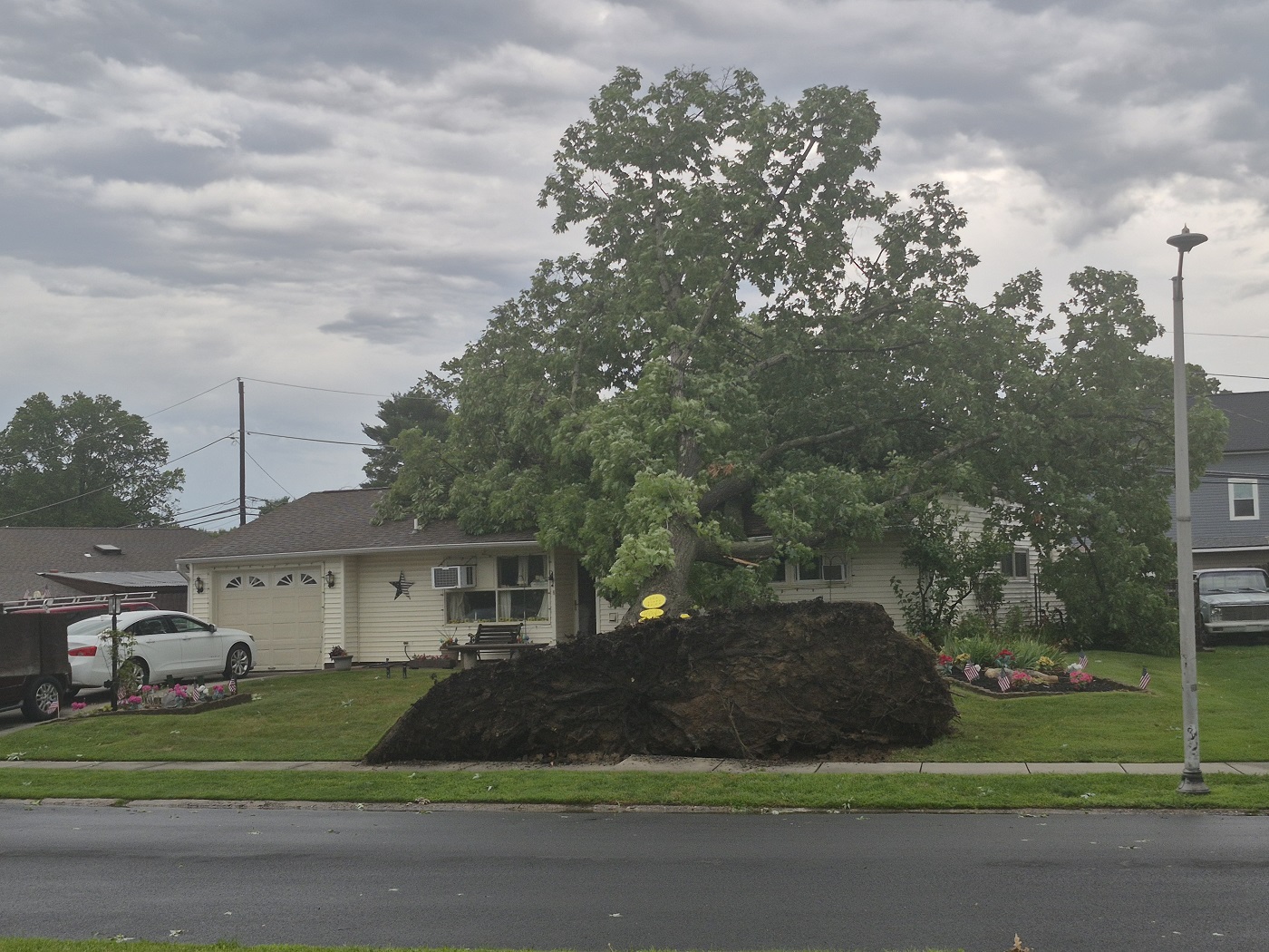 A fast-moving and intense thunderstorm caused widespread power outages and damage as it struck the Levittown area on Thursday evening.