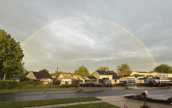 A beautiful rainbow lit up the sky over Levittown after the Thursday evening storm following a brief rain shower that passed through the area.