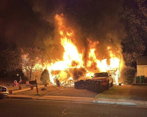 A Fairless Hills home belonging to a family, including a beloved local “Santa Scott,” was destroyed by a fire Saturday night.